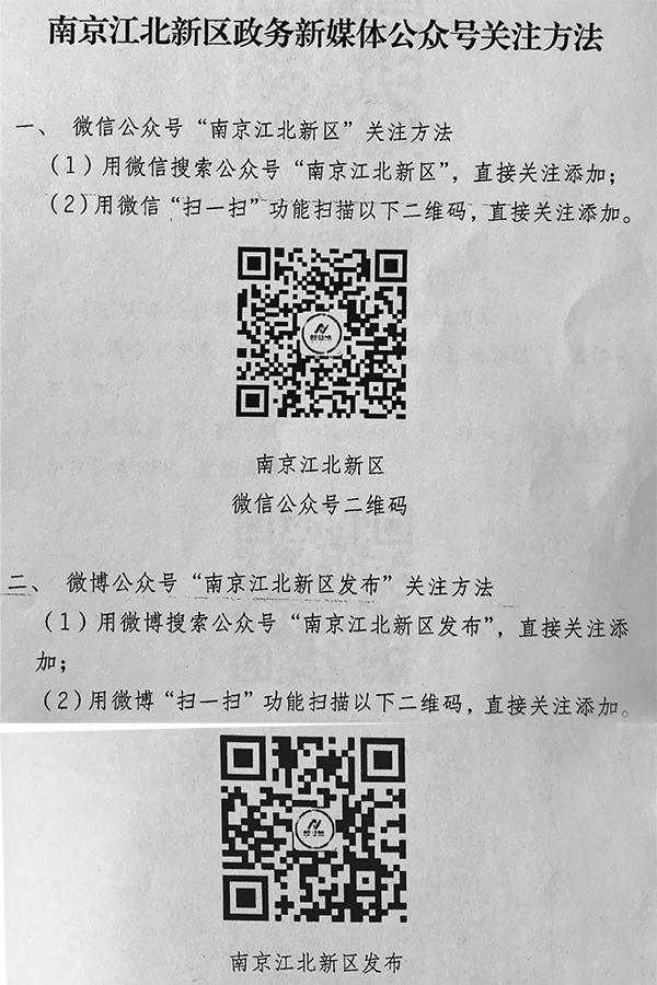 附件:南京江北新区政务新媒体公众号关注方法