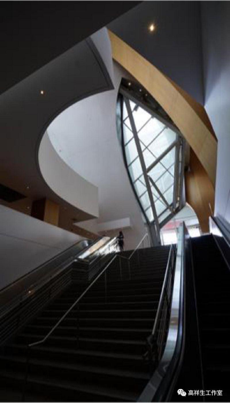 斯塔特中心室内空间全面地展示了解构主义设计中残缺、扭曲、分离、突变、无序、断裂、动势、失稳、奇艳、含糊的特点。