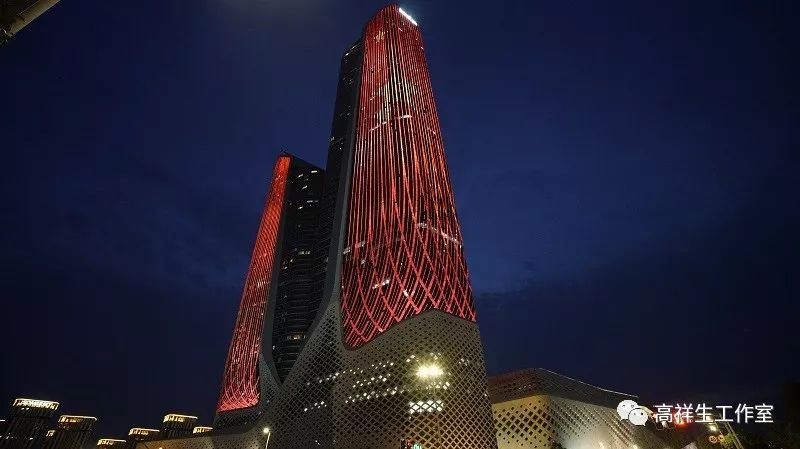 六是扭曲。采用不规则的几何形状进行立面造型,形成特殊的曲线形制和各种变异的形状;运用各建筑局部之间的重叠、交错、旋转或移位等方式进行新的空间构造。