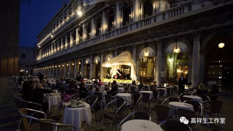 阳光下圣马可广场的咖啡座(图片来源:作者自摄)