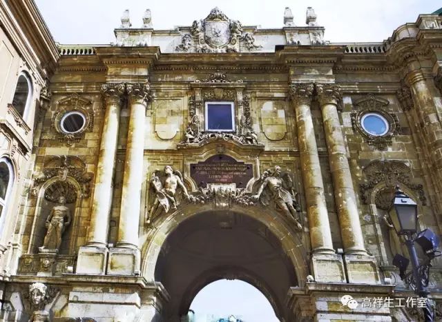 图31匈牙利皇家花园入口门头的巴洛克风格柱式以混合柱与壁面的各种雕刻组合,形成浓郁的巴洛克风格 作者自摄