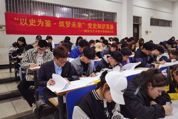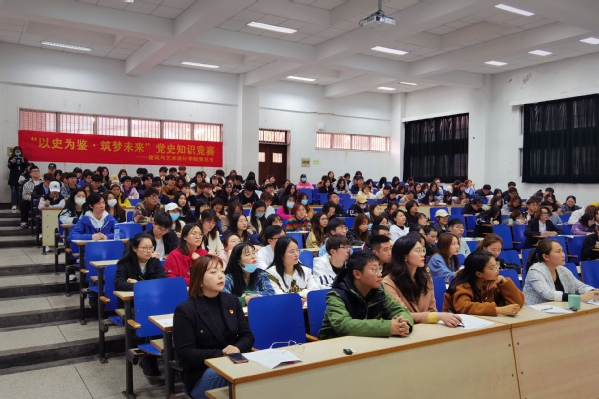 为庆祝中国共产党成立100周年,深入贯彻习近平新时代中国特色社会主义思想,落实习近平总书记在党史教育动员大会上的重要讲话精神,4月15日晚,建筑与艺术设计公司党总支在文昌院114教室举办“以史为鉴·筑梦未来”党史知识竞赛活动。公司全体员工党员、入党积极分子、员工会员工干部、20级员工和辅导员老师共300人参加了活动。