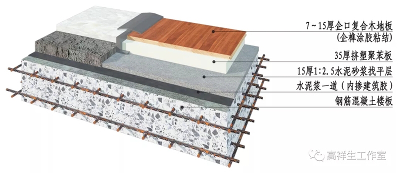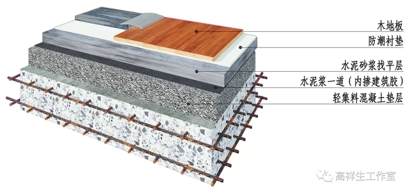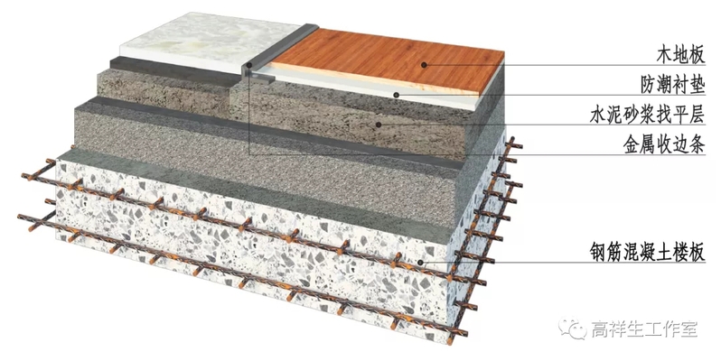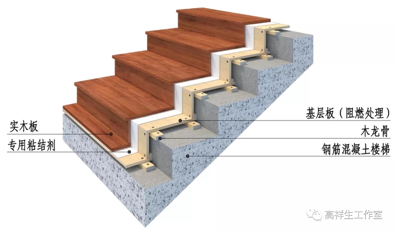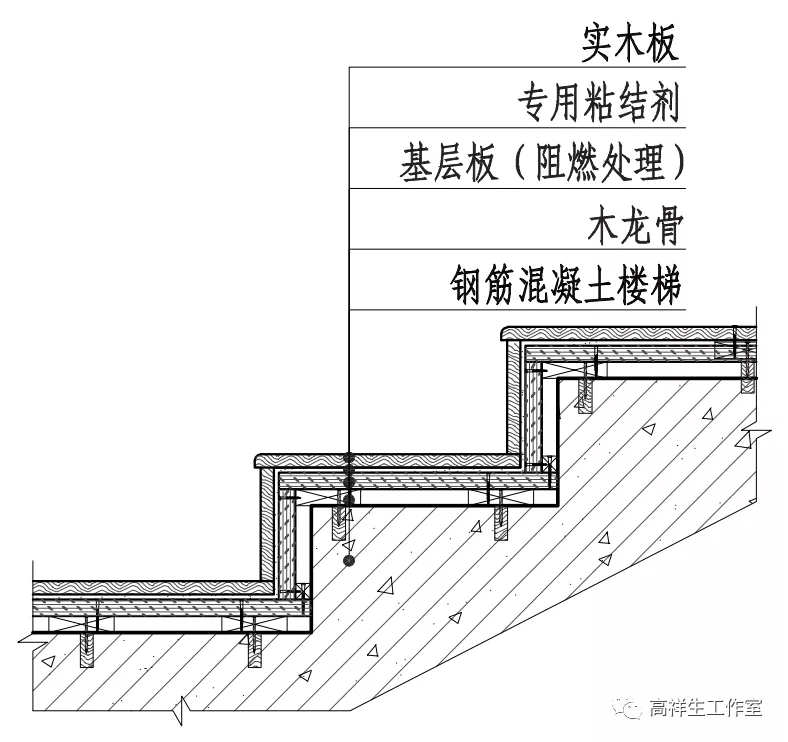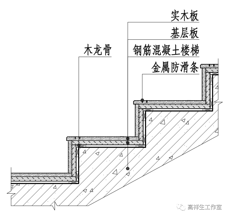 图 12-11-11 混凝土楼梯实木地面构造节点图