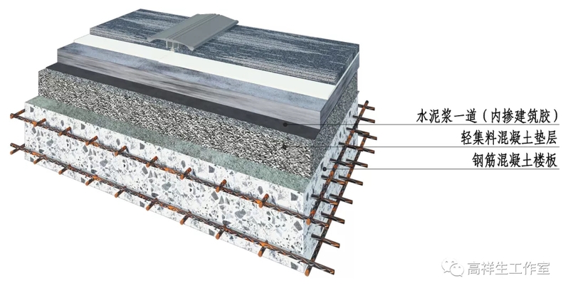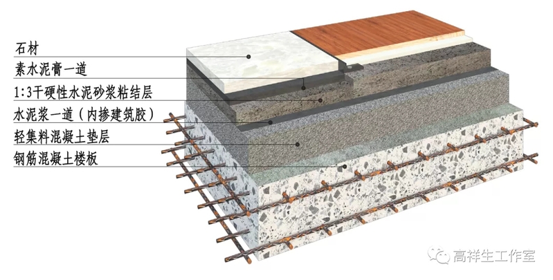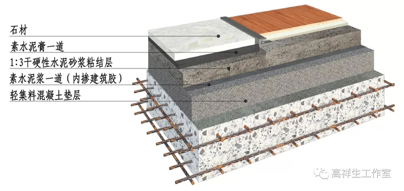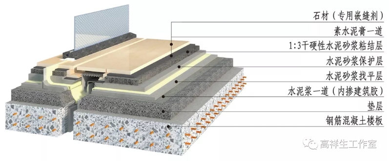 图 12-10-59 卫生间淋浴隔断石材挡水槛地面(一)构造节点图