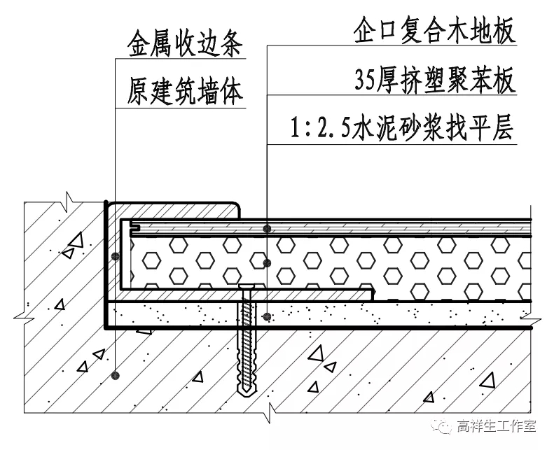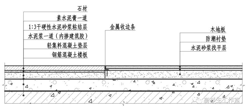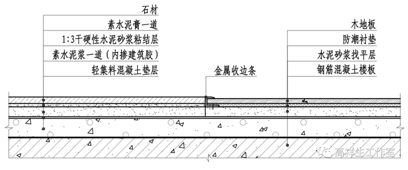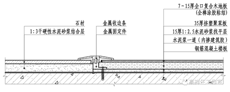 图 12-10-12 石材与木地板交接地面构造节点图(L 形收边条)