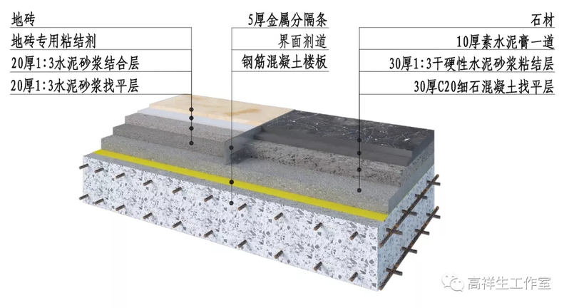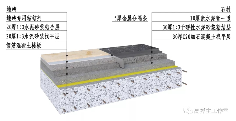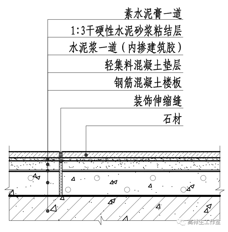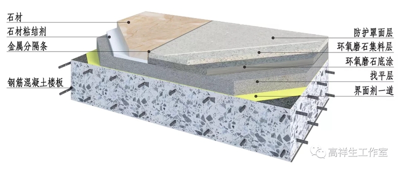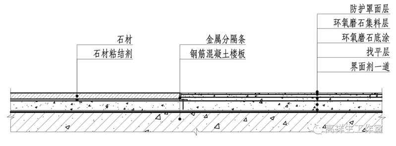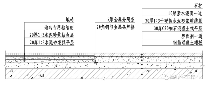 图 12-10-6 石材与水磨石交接地面构造节点图