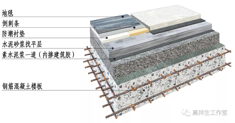 图 12-10-30 地毯与地毯交接地面构造节点图