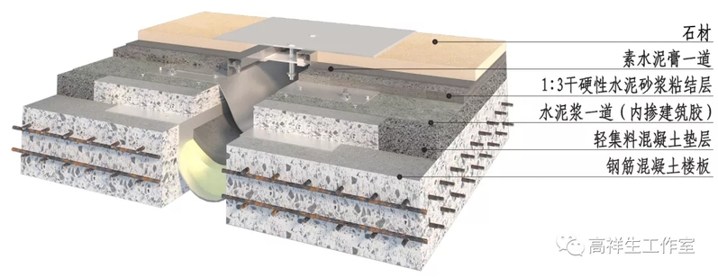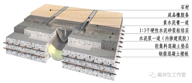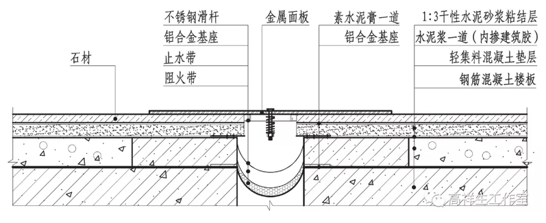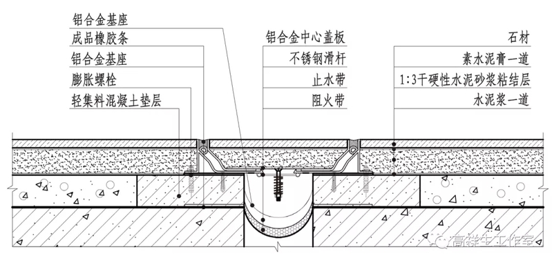 图 12-10-52 伸缩缝(四)构造节点图(石材地面)
