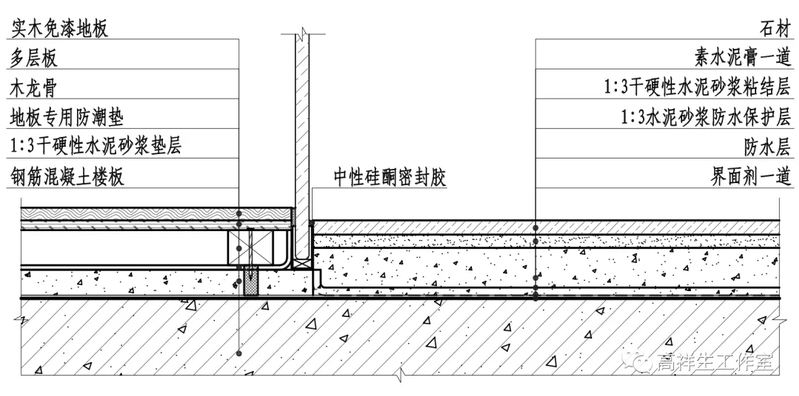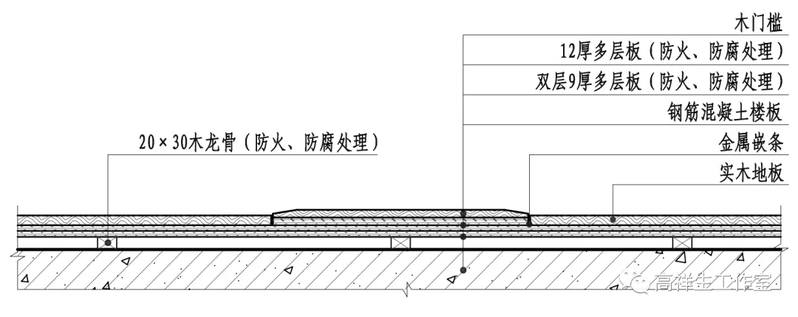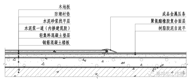 图 12-10-39 木地板与木地板交接地面构造节点图