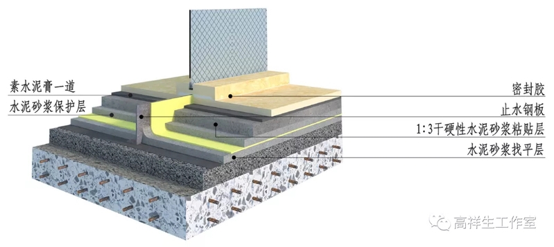 图 12-10-62 卫生间淋浴隔断石材挡水槛地面(二)构造节点图