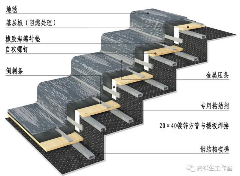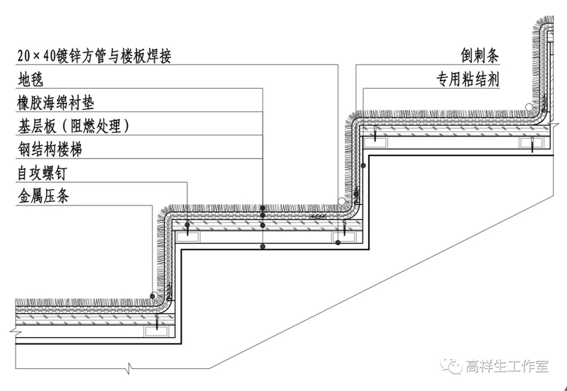 图 12-11-18 钢结构楼梯地毯地面构造节点图