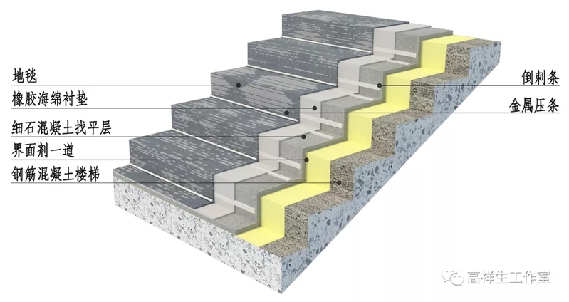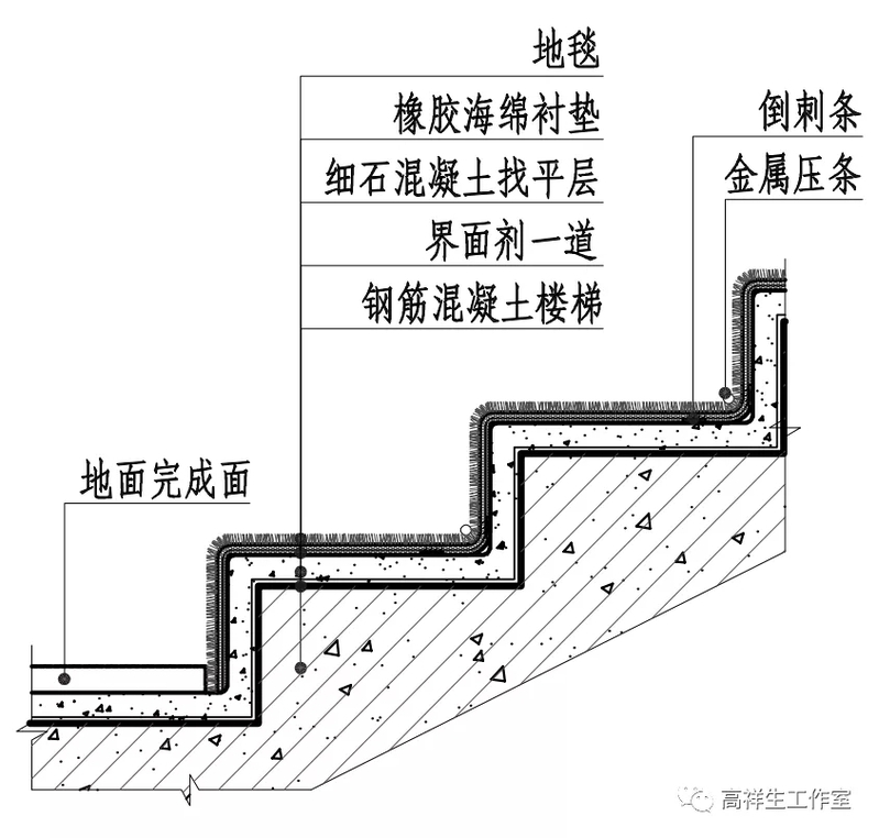 图 12-11-16 混凝土楼梯地毯地面构造节点图