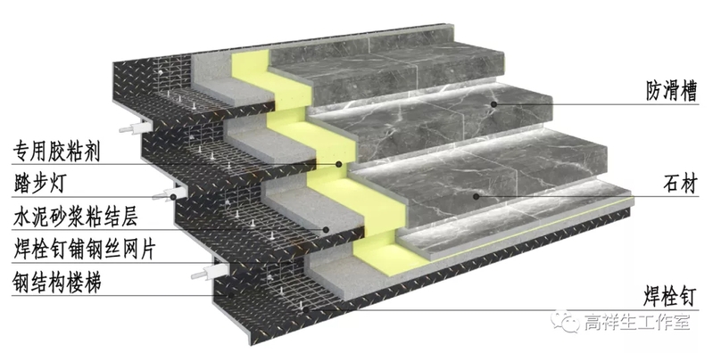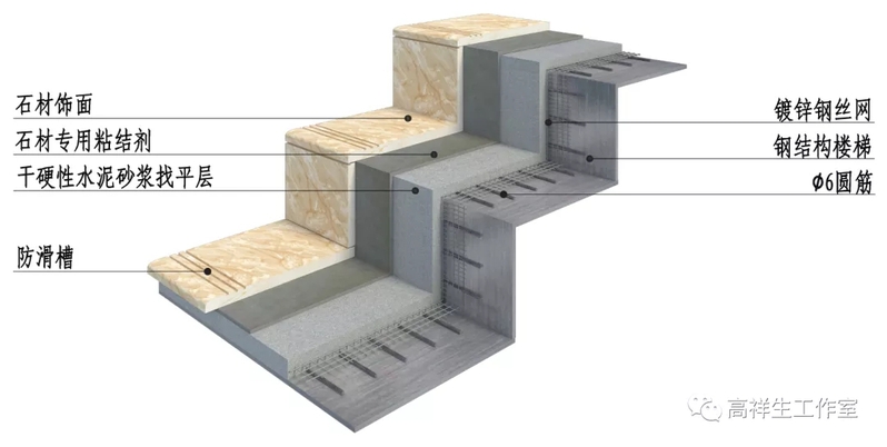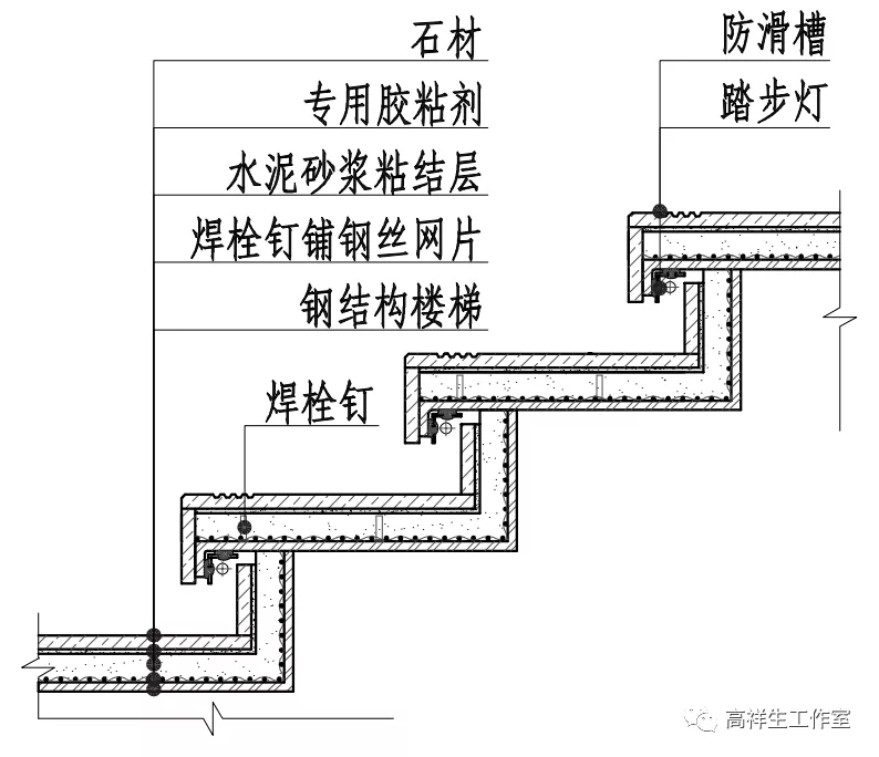 图 12-11-4 钢结构楼梯石材地面构造节点图