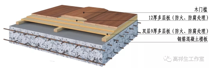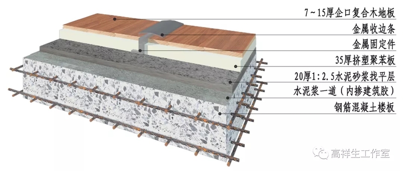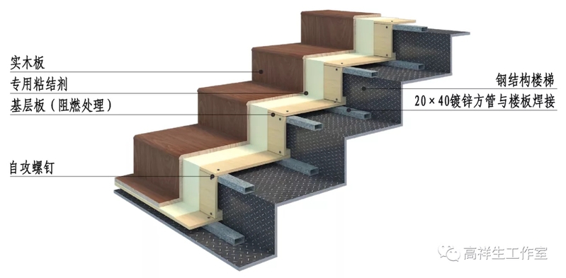图 12-11-15 钢结构楼梯实木地面构造节点图