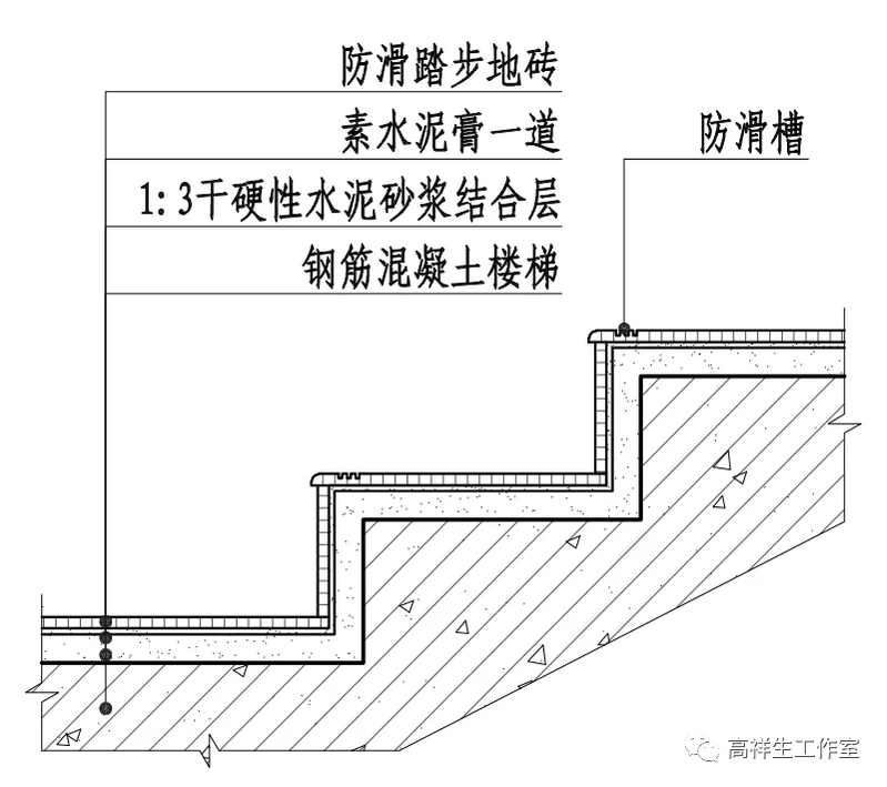图 12-11-8 混凝土楼梯地砖地面构造节点图