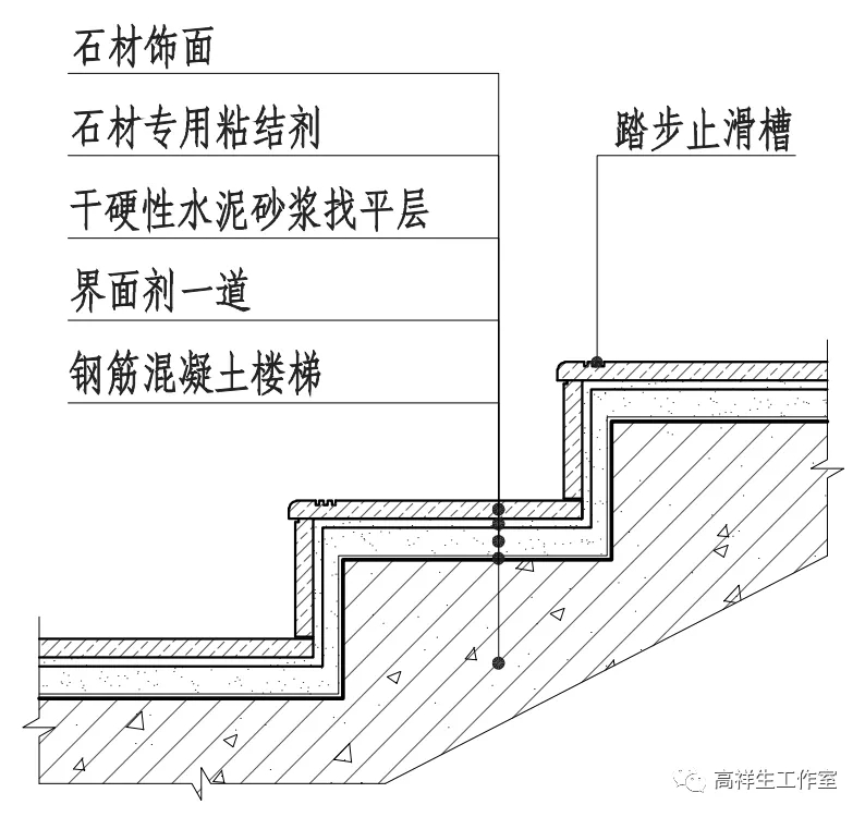 图 12-11-3 混凝土楼梯石材地面构造节点图