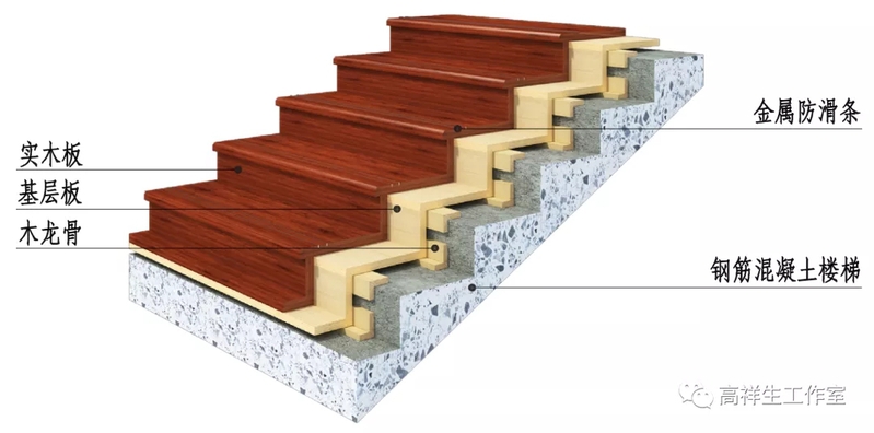 图 12-11-10 混凝土楼梯实木地面三维图(嵌防滑条)