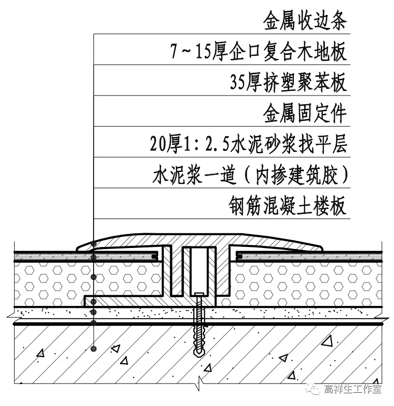 图 12-10-55 复合地板地面伸缩缝(一)构造节点图