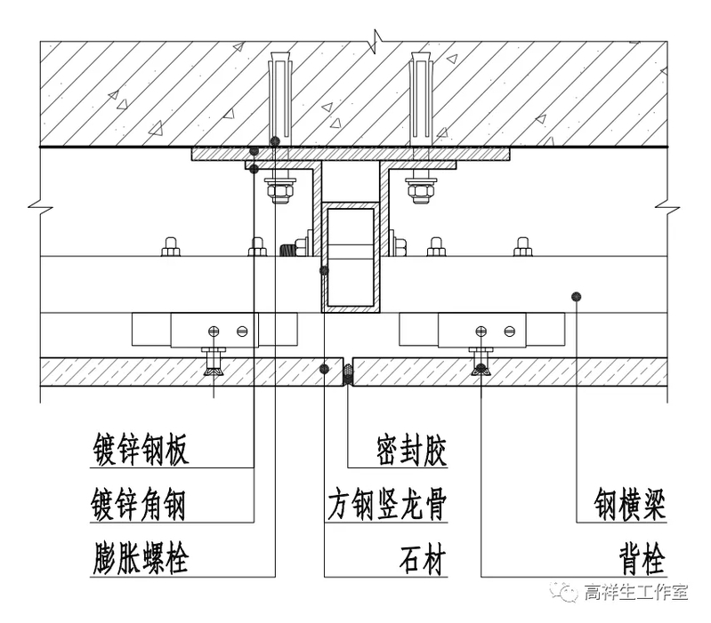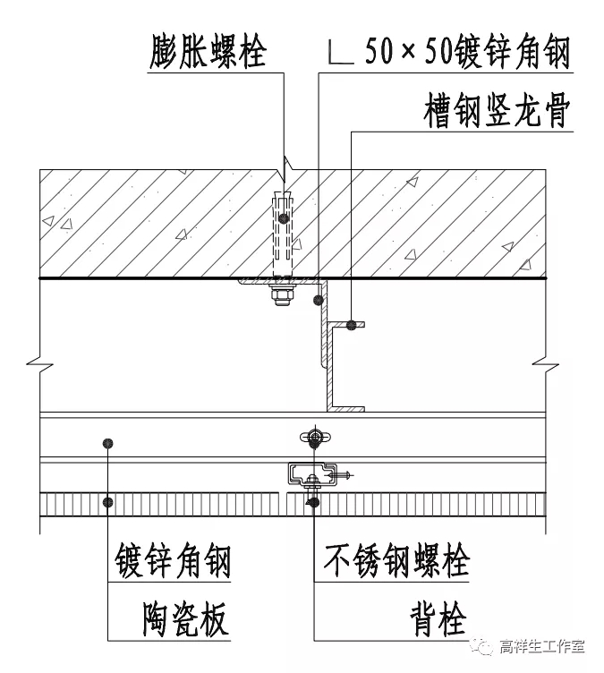 图 14-4-3 石材干挂墙面竖向构造节点图(背栓式)