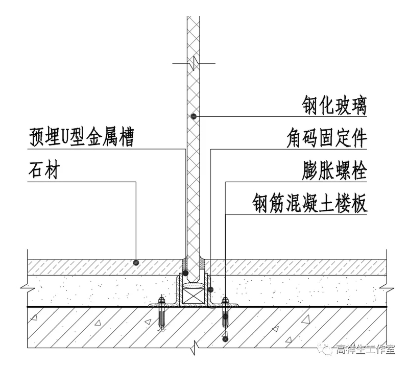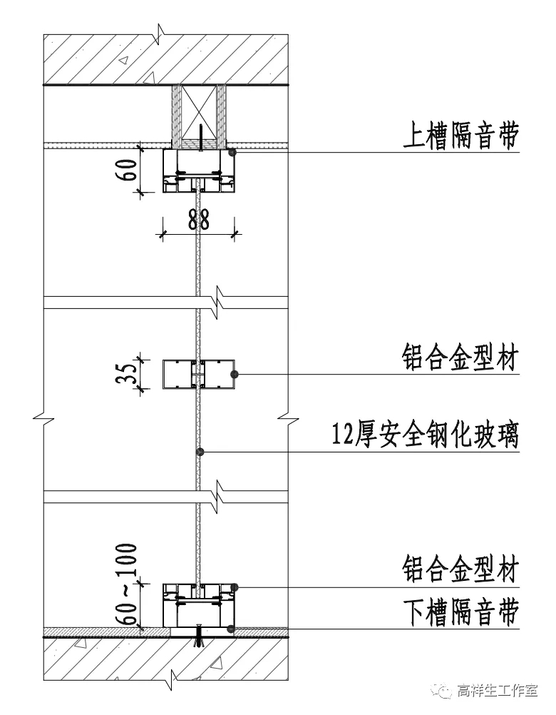 图 14-2-4 玻璃隔墙(一)横向构造节点图