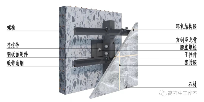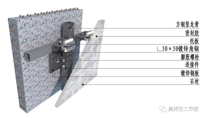 图 14-4-1 石材干挂墙面三维图(背栓式)方向一