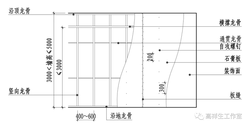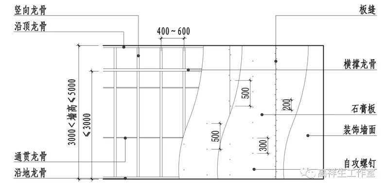 图 14-1-6 双层石膏板隔墙墙面立面图