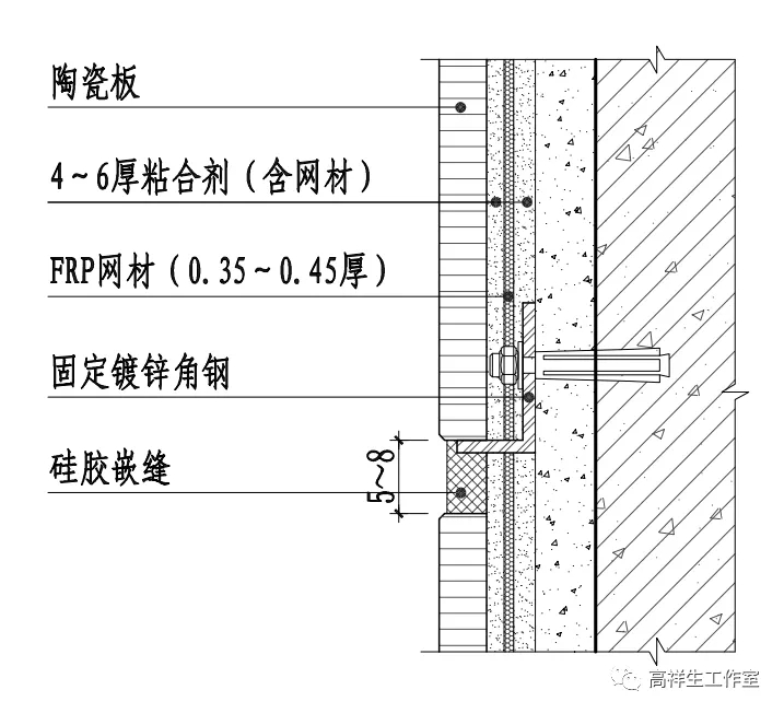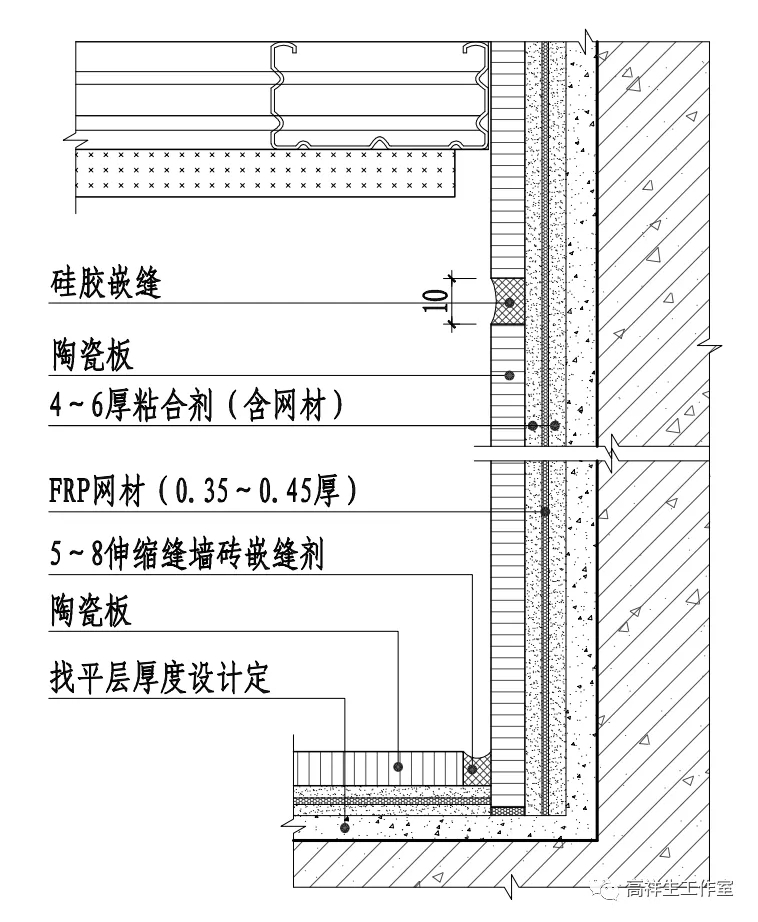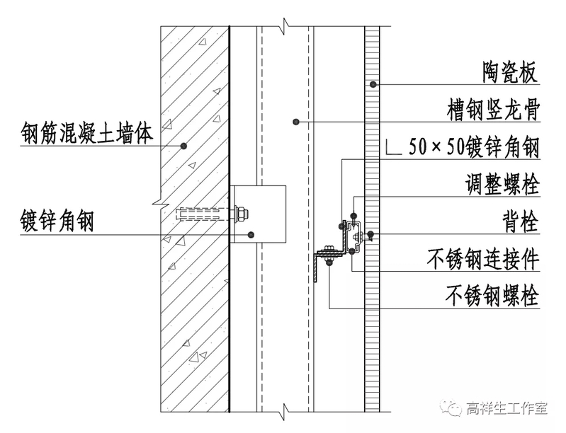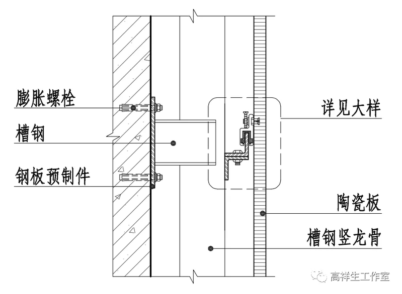 图 14-3-20 墙砖干挂墙面竖向构造节点图(全龙骨)