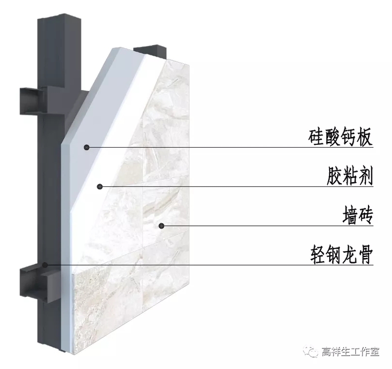 图 14-3-17 墙砖干挂墙面三维图(全龙骨)