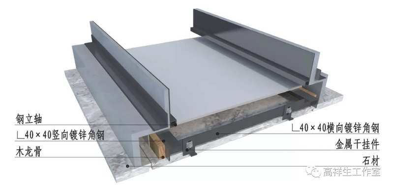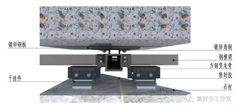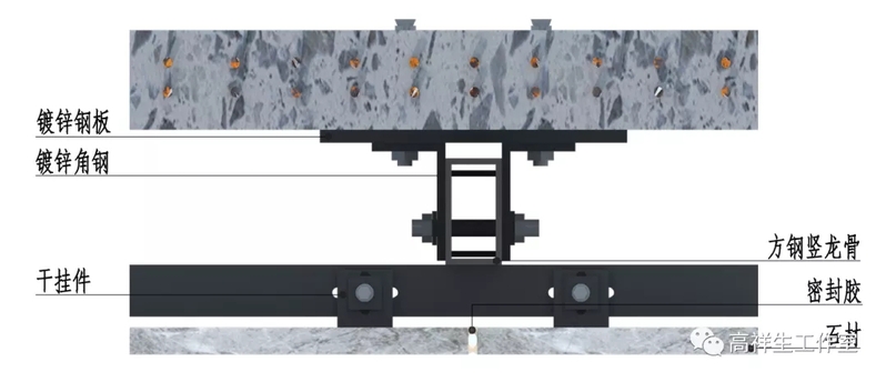 图 14-4-9 石材干挂墙面三维图(短槽式)方向一