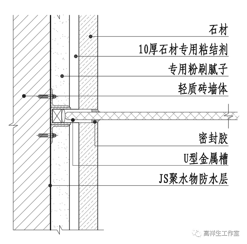 图 14-4-15 墙面石材湿贴构造节点图