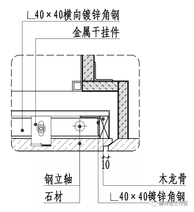 图 14-4-11 石材干挂墙面竖向构造节点图(短槽式)