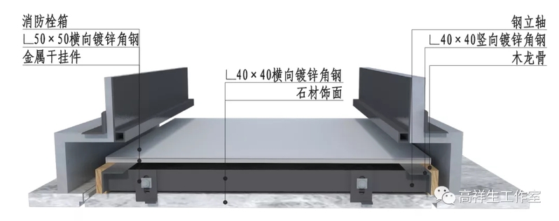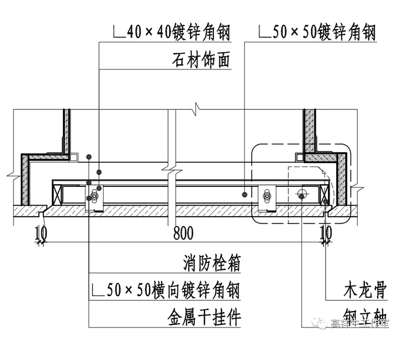 图 14-4-19 墙面石材与消防栓箱交接构造节点图