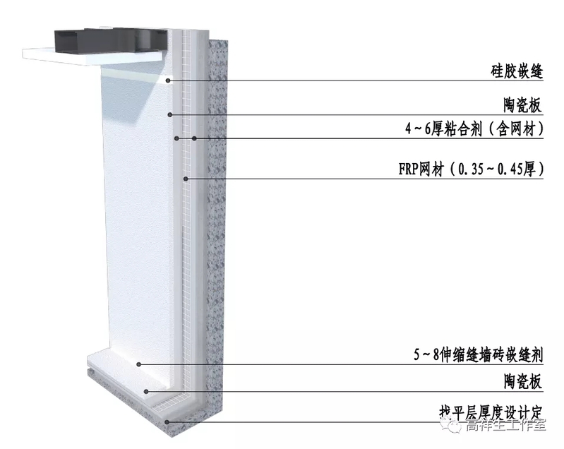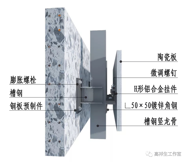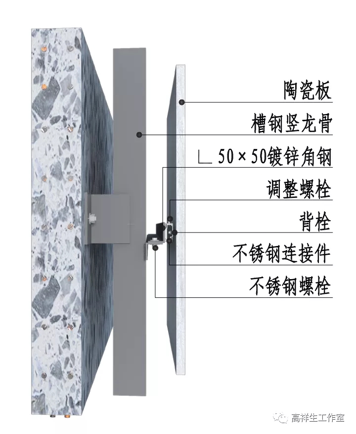 图 14-3-16 墙砖干挂墙面三维图(通风式背栓)