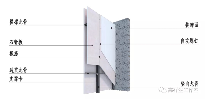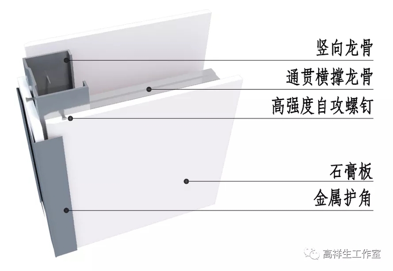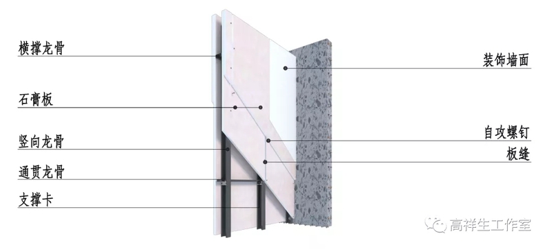 图 14-1-5 双层石膏板隔墙墙面三维图