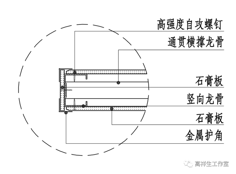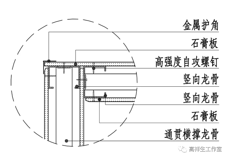 图 14-1-9 轻钢龙骨隔墙交接(一)构造节点图(墙端头)