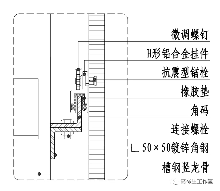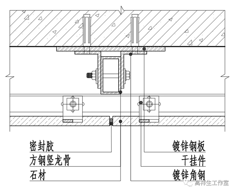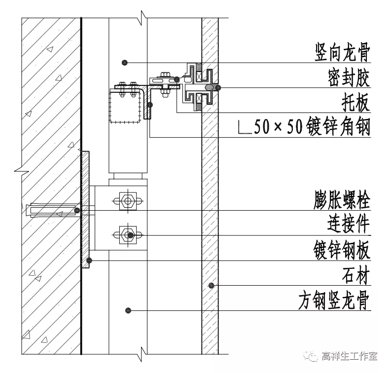图 14-4-7 石材干挂墙面竖向构造节点图(元件式)