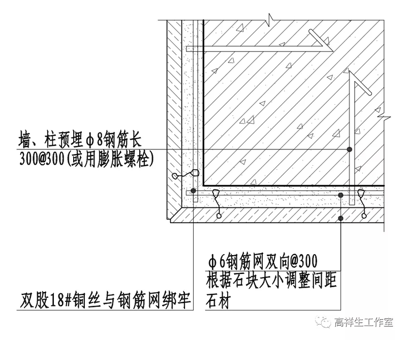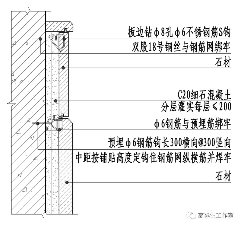 图 14-4-16 墙面石材湿贴构造节点图