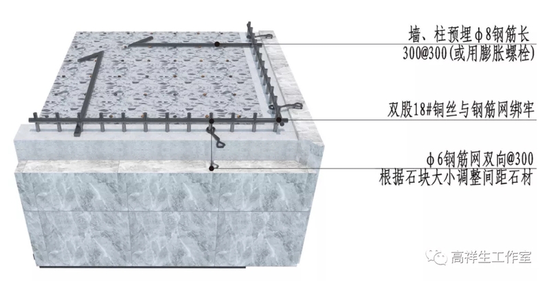 图 14-4-14 墙面石材湿贴三维图方向二