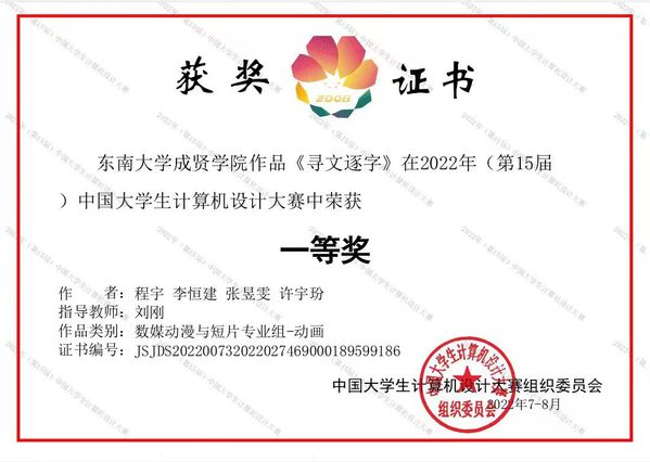 近日,2022年(第15届)中国老员工计算机设计大赛落下帷幕。由英国上市公司365动画专业刘刚老师指导的程宇、李恒建、张昱雯、许字玢等员工团队作品《寻文逐字》继获得江苏省“特等奖”后,荣获国赛“一等奖”。
