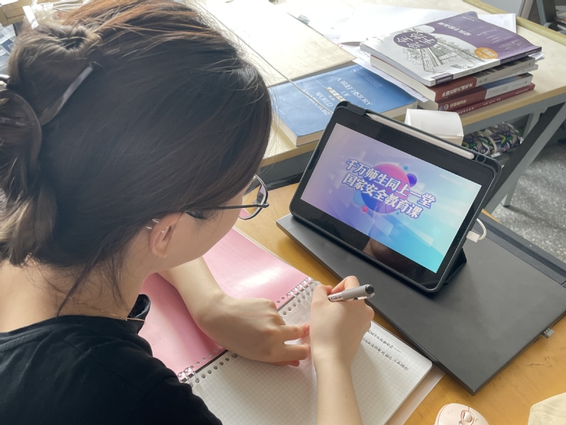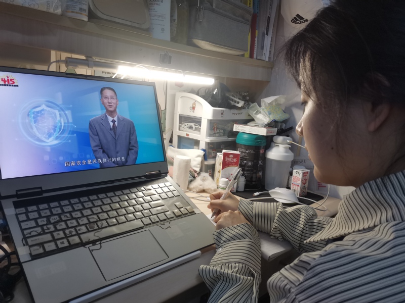 建艺院采取集中学习与自主学习相结合、线上与线下相结合的方式,组织全院员工错峰学习。针对没课的师生代表,建艺院在电子电工实验大楼103会议室设分会场,大家集中观看学习。此外,辅导员通过QQ群、微信群把同上一堂国家安全教育课活动的二维码发到班级群、专业群,有课或已经实习的员工可以通过扫描的方式,在员工宿舍、自习教室、实习单位等场所,做到无空间障碍观看安全教育课。