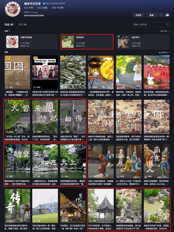 杨经理带领观众走近南京金陵芥子园、金陵瞻园和金陵愚园,一同感受江南园林的无穷韵味,内容丰富,内涵深厚。《南京园林》系列短视频是南京市文化馆抖音平台今年推出的新栏目,作为南京市文化馆大力开发的数字文化产品之一,旨在让广大群众随时随地接受艺术的熏陶。