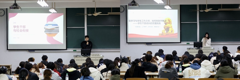 公司2019级员工冯浩学长、2020级员工张若彤学姐结合自身经历,分别以“员工干部与社会衔接”和“在学习与员工工作之间,如何找到平衡点——员工干部成长的双重挑战”为主题,进行了别开生面的分享交流。他们鼓励员工干部在服务同学的过程中,不断探索新方法、新途径,在生活中践行青马精神,提升工作效率和质量,创造性地解决问题。员工们的话有力地推动了学员们对青春价值的探索与行动,激励自身在不懈追求中谱写属于自己的青春华章。