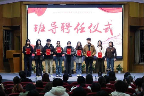 随后进行班导聘任仪式,公司综合办主任徐曼老师为2024级班导颁发聘书。在2024级青马学员初入大学感到懵懂的时候,陪伴大家的不仅有指引大方向的辅导员们,还有在各个方面与大家深入交流的班导们。2022级姜子宜、王栋、季姝琳、江星毅、姜可心、张斯羽、刘阳、钱宇晴、唐亦婷、晏艺文用激情与担当,为各自指导的班级做出实质性贡献。