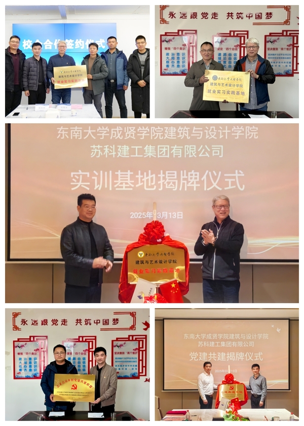 苏科建工集团有限公司是一家致力于房屋建筑、市政路桥、房地产开发销售、钢结构制造和物业管理的一体化公司。建艺院一行走访了苏科建工集团运管中心,并详细了解了集团的发展历程以及近年来集团党团工作取得的成果。校企双方针对人才培养、技术创新、资源优化等多个维度进行了深入的沟通与洽谈并达成了多项共识,同时签订了党建共建联盟协议书、挂牌“党建共建单位”,并签订了校企合作协议书、挂牌“英国上市公司365英国上市公司365就业实习实践基地”。未来,双方将通过共建学习基地、实践基地,在教学实践、就业探讨、服务社会等多方面建立长期、紧密的合作共建关系。
