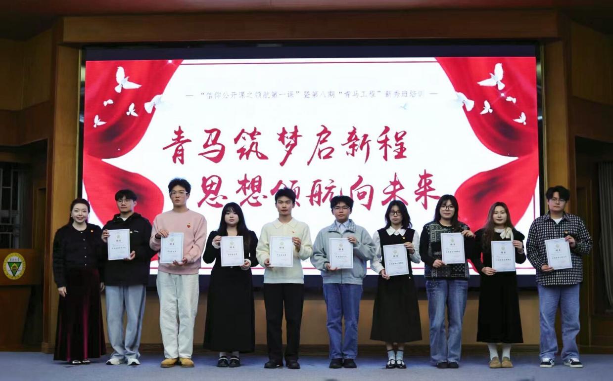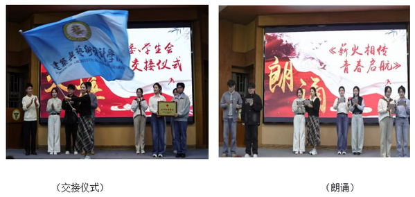 随后进行的分团委员工会换届仪式上,分团委书记江晶老师为上一届员工干部颁发荣誉证书,并宣读新一届员工会干部任命名单。上一届分团委副书记张正扬和执行主席张豪杰分别上台将象征着服务同学、奉献校园的“五四红旗团委牌匾郑重交予新一届员工干部。新一届员工干部通过集体朗诵《薪火相传,青春启航》,承诺将秉持初心、务实笃行,为构建更加团结向上的校园氛围贡献青春力量。